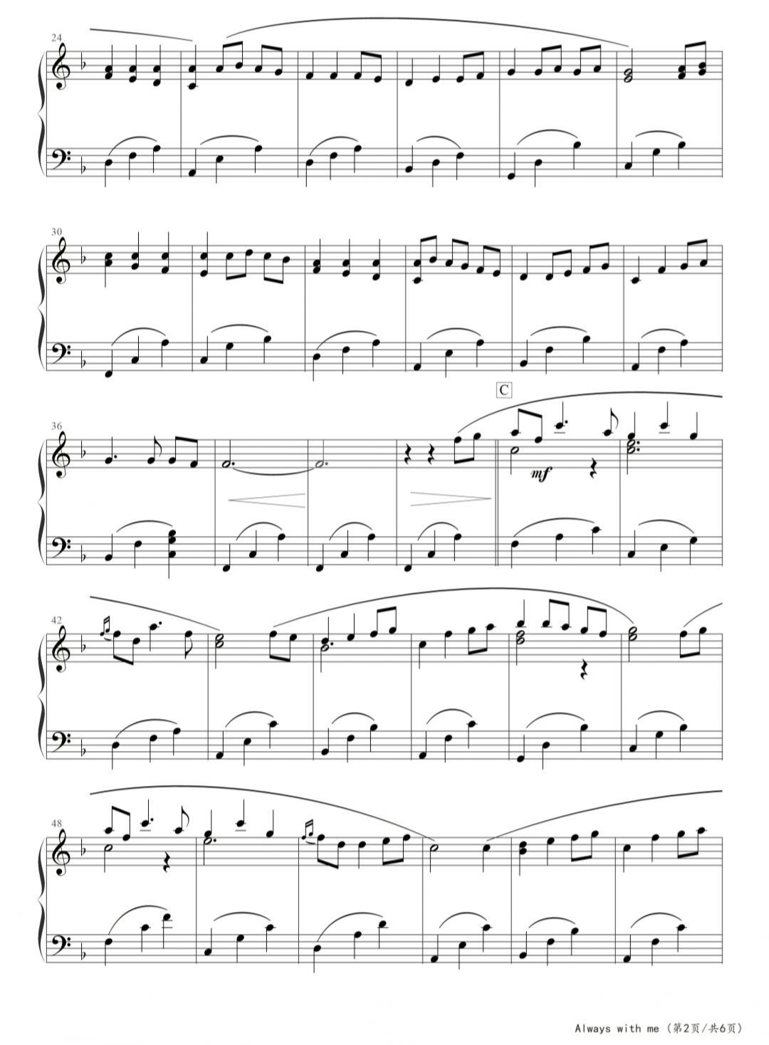 《永远同在》Always with me,钢琴谱原版,千与千寻,久石让
