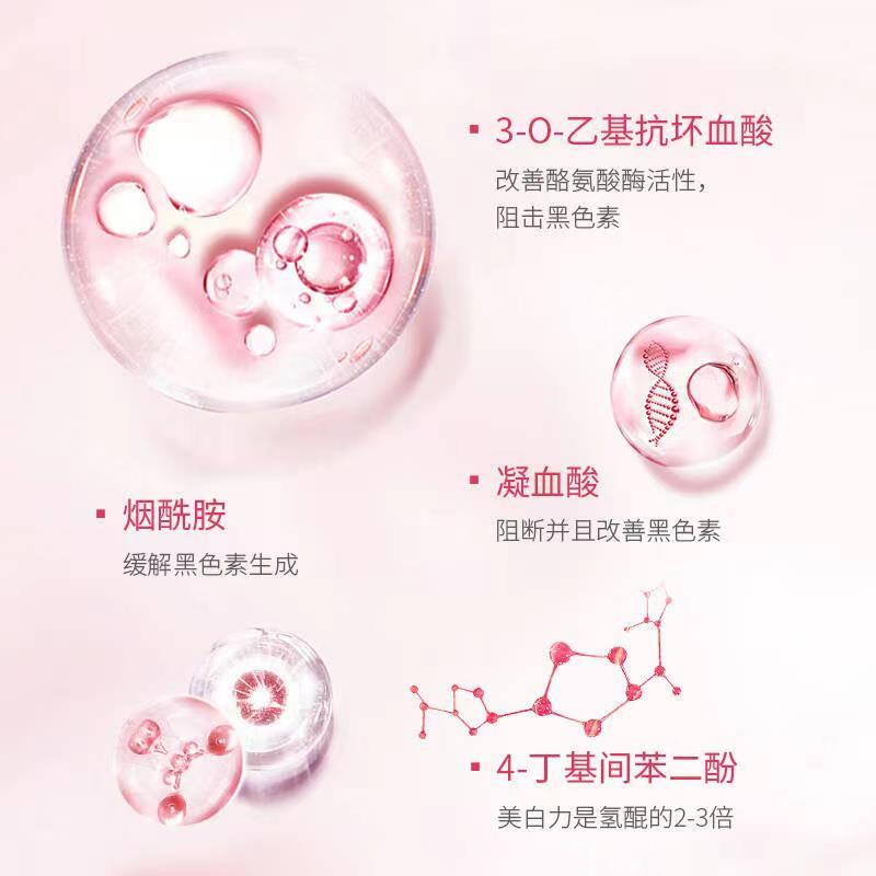 萃取天然植萃,从根源抑制黑色素的生成,深透肌底,层层焕白淡斑,特含明星成分-烟酰胺,美白界的扛把子。我们肌肤之所以会变黑的直接原因是角质细胞摄取了黑色素颗粒,而烟酰胺对黑色素的转运系统有35%-68%的抑制作用,长期使用含有烟酰胺产品的护肤品,可以让皮肤看起来更加白嫩细腻,改善皮肤状况,从而达到美白效果。