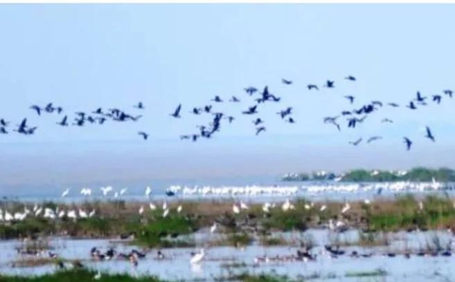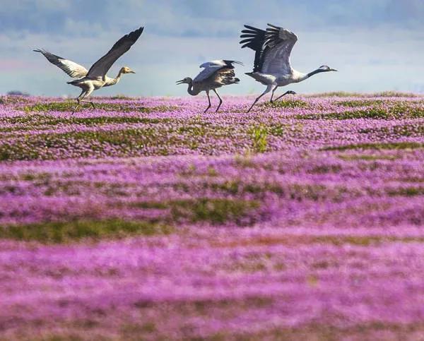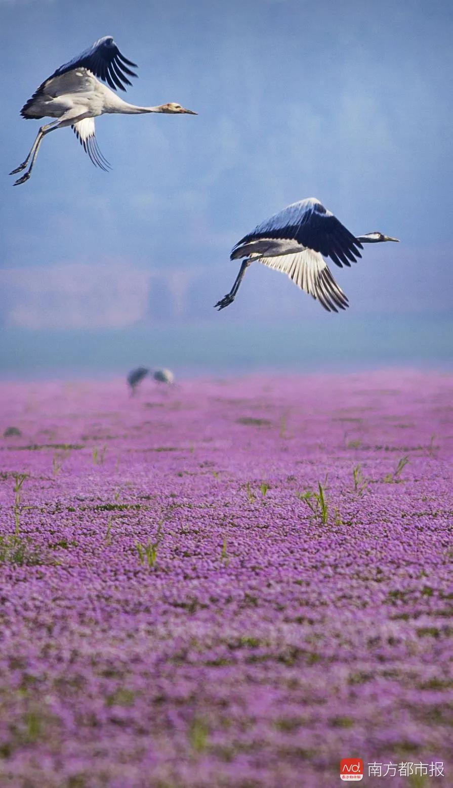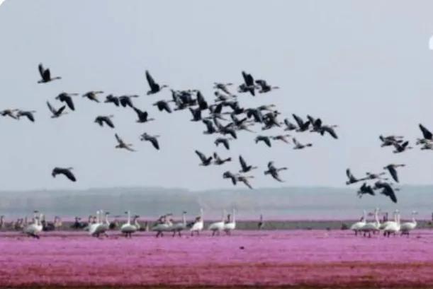 除了美丽的料子花。还有一大群可爱的小伙伴们。数千只大雁,白琵鹭,野鸭等越冬候鸟也抵达来这里越冬。