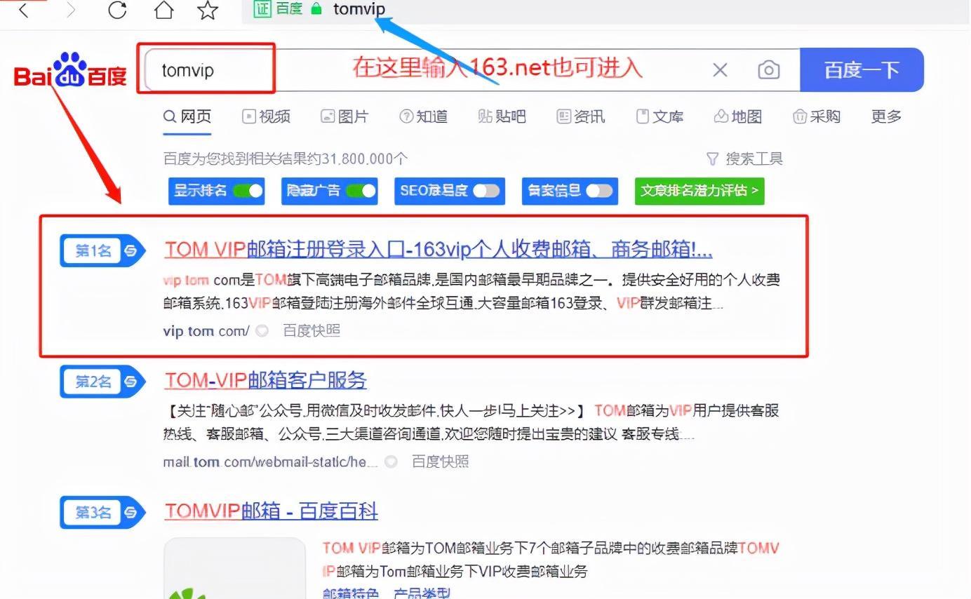 01-在电脑的任意浏览器中敲入Tom VIP邮箱、163.net后进入官网输入账号密码登录
