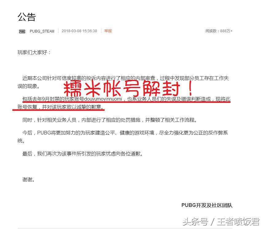 原来,事情是这样的,最早被官方点名封禁的前斗鱼主播魔音糯米帐号被解封了(不对,之前不是说的永久封禁么?)当然,这件事本身来说官方是最有发言权的,毕竟后台数据在都官方手里,糯米这半年多的时间四处申诉我们也是看在眼里,官方这次能专门为糯米发布公告以示清白,确实基本可以证明魔音糯米当时是没开挂的。