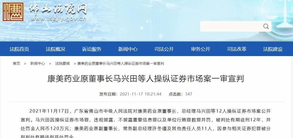 马兴田因操纵证券市场罪、违规披露、不披露重要信息罪以及单位行贿罪数罪并罚,