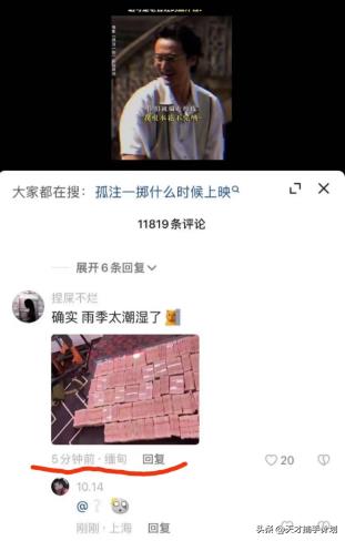 有网友留意到,因为《孤注一掷》预告片里的内容太过真实,在电影官方抖音号的评论区,竟然出现了IP地址在缅甸的账号,还晒出了成堆的钞票和枪。