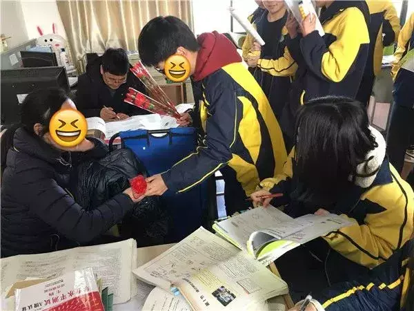 在重点蓝色大军中,一抹黄色象征阳光积极青春向上,在人群中一眼就看到六中的学生;