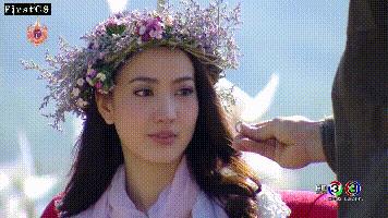 早晨起来,男主将一顶花环戴在了女主的头上,两情相悦的二人在美丽的日出下甜蜜KISS