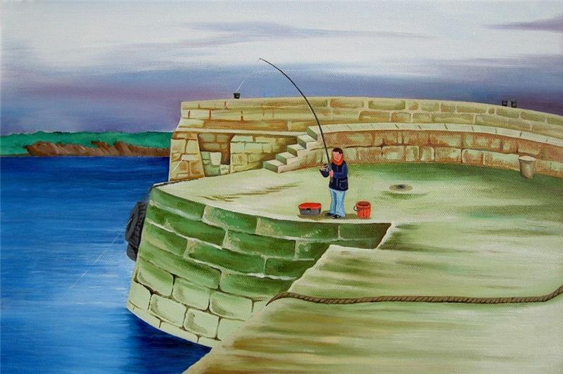 手握鱼竿,边走边钓。鱼线宜细,鱼钩宜小。