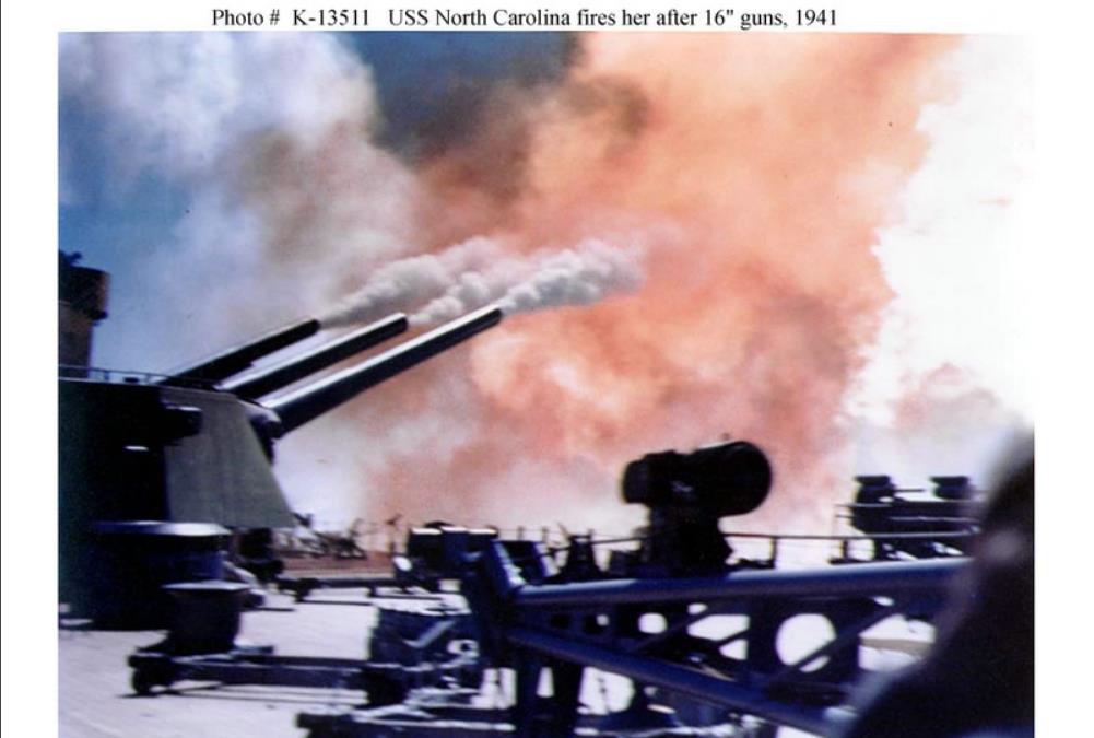 “北卡罗来纳”号在太平洋战场长达3年的战争岁月里,共航行30余万海里,参加过15次战役和重大战斗活动,荣获多枚战役铜星纪念章。战争期间,它进行过9次对岸炮击,击沉1艘运兵船,击落击毁24架敌机,营救过坠落在海上的美国飞行员,而它自己仅有10名舰员阵亡,67人负伤,可谓以极小的代价取得了巨大战绩 。