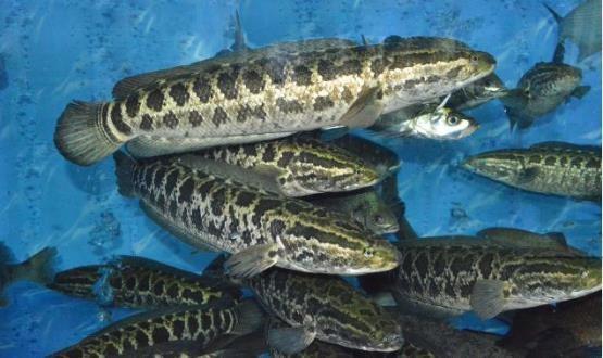 5、黑鱼(乌鳢):属凶猛的肉食性鱼类,贪食,以偷袭式掠食方式捕食。是鳢(li)科鱼类中个体大、生长快、经济价值高的淡水名贵经济鱼类。成熟的乌鳢具有很强的跳跃能力,尾重500g以上的成鱼可跃出水面1~1.5m,幼鱼也能跃高0.3~0.5m。肉质细嫩、骨刺少,味道鲜美,含肉率高,蛋白质含量高,每100g肉含蛋白质 19.8g、脂肪 l.4g;耐受力极强,即便是缺水缺氧,也能存活数小时,出水后不易死亡;药用价值高,具有滋补、收肌、活血、加速伤口愈合等多种药用价值,有祛湿利尿、去瘀生新、通气消肿等功效,对急性肾炎、肺炎、咽喉炎等10多种疾病均有疗效。