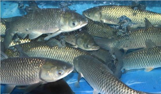 3、草鱼:体呈茶黄色,腹部灰白,偶鳍略带灰黄,奇鳍稍暗。栖息于江河、湖泊的中下层。为草食性鱼类。3—4龄性成熟,4—7月在江河流水中产卵,卵为漂流性.膜径约5mm。是中国淡水养殖的四大家鱼(草鱼、青鱼、鲢、鳙)之一。
