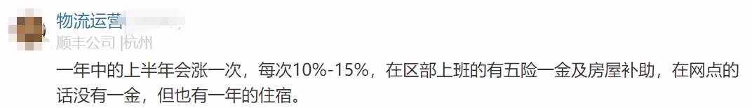 顺丰员工原话2:一年中的上半年会涨一次,每次10%-15%