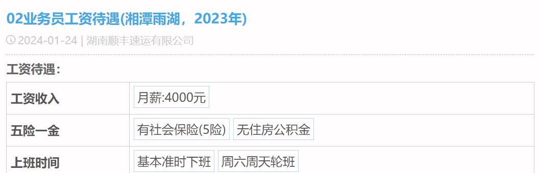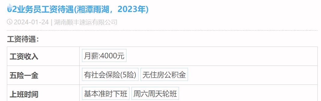 第三位自曝薪酬待遇的是顺丰的业务员,他的月薪是4K,有五险,工作日准时下班,周末轮班