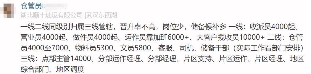 顺丰员工自曝的薪酬待遇