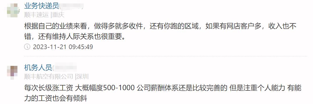 我们来看看其他顺丰员工自曝的薪酬待遇