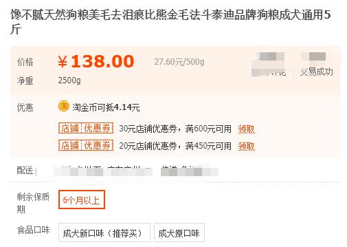 馋不腻价格要138元,2.5kg,相当于1斤要27.6元,性价比比较高,而且狗粮配有试吃装,要是不喜欢吃可以退的!