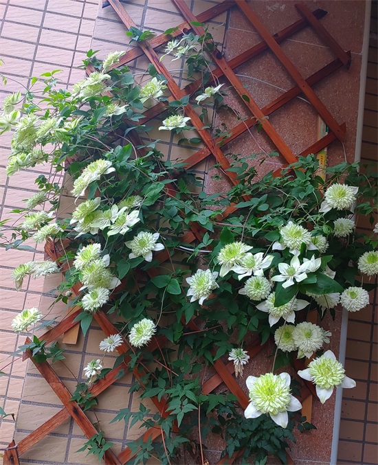 小绿可能是最耐阴铁线莲,北阳台花友的首选,每天只要有两三个小时的日照时间,就能正常生长、开花,植株也不是很高大,只能长到两米左右,攀爬能力强,在阳台墙面上铺一层网格,能培养成一面小型花墙,极有立体感,装饰效果也很好,花期也是春秋两季两度盛开。