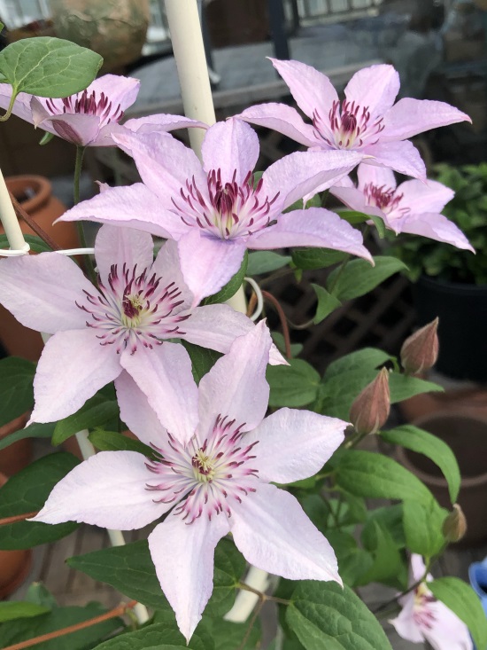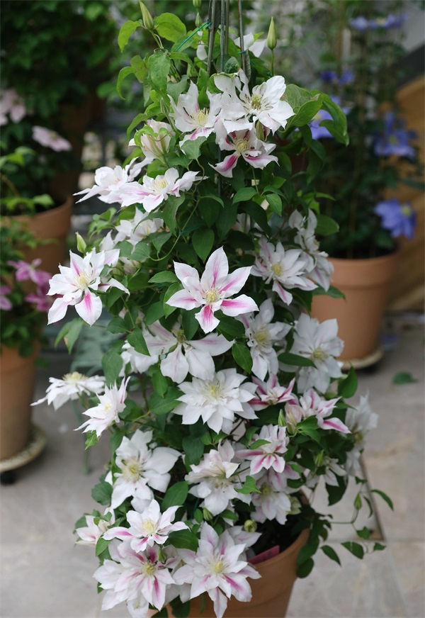 第一种,伍斯特美女(Beauty of Worcester),驰名中外的知名品种,十九世纪就已经育成,至今仍是最受花友喜爱的品种之一,可见其受欢迎程度。二类铁,植株长势中等,园艺应用广泛,地栽可做篱笆、围栏装饰,也可以配合其他藤本花卉制作花墙,对盆栽种植很适应,也可以做垂吊盆栽。