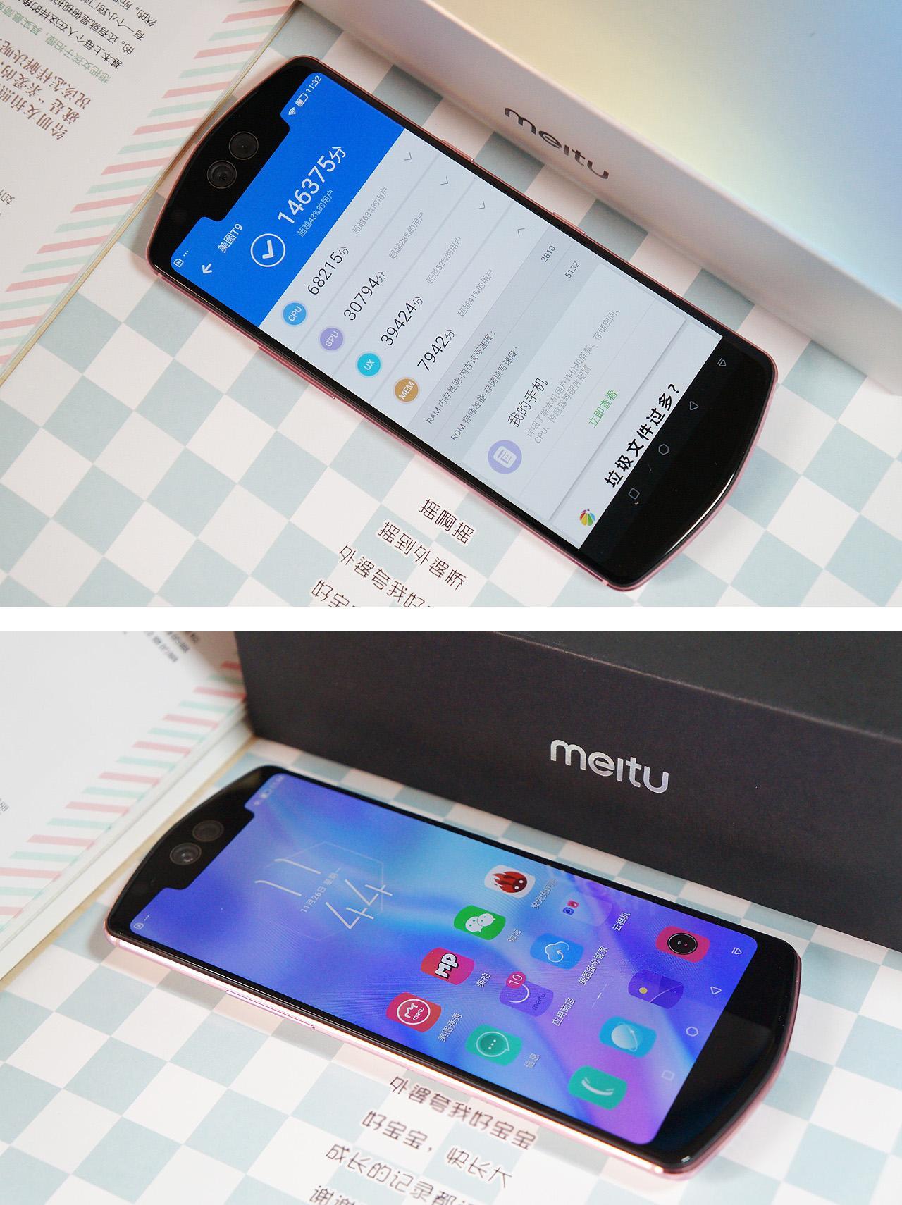 今天给大家带来的是美图T9的最新版本——幻彩版!T9在美图家族里算得上最高的配置了,也打破了美图手机不能当主手机使用的魔咒,处理器升级为高通骁龙660,存储方面有4G/6G运存和64G/128GB内存等多个版本可供选择,非常人性化。我这次试用的幻彩版是4G+128G的,个人非常推荐这个配置,因为64G内存对于爱自拍的人来说实在太小了,光是系统就占了10多个G,再加上常用的软件也就剩不下多少空间存放照片了,所以128G才是自拍达人的理想存储空间。至于运存就看你除了拍照还要干什么了,4G运存跑分14万多,日常使用足以,如果你还是游戏达人那么就推荐6G的版本了,4G玩玩王者还可以,对于更高要求的手游就显得心有余而力不足了。幻彩版T9配备了2900毫安电池,电池容量真心不算高,但有骁龙660的功耗控制和18W双引擎快充的加入,也算是助了T9一臂之力,实际使用体验还不错,完全可以抵挡一天的频繁使用。总体来说美图还是侧重于拍照的,这次更是把相机功能再度升级,通过这段时间的试用,可谓是惊喜不断,人脸3D档案、OIS光学防抖、骨骼点识别技术、金字塔多维人像算法……一个一个黑科技的加持,让这种幸福感来的更猛烈些吧!美图手机在拍摄人物方面绝对是最强的手机,没有之一。 喜欢用美图手机的人绝大部分是颜控,因此手机的配色也马虎不得,T9的可选颜色非常丰富,相比之前的四款基础配色,这次又推出了两款幻彩配色:幻彩白、幻彩粉,以及四款限量版卡通主题颜色:樱桃小丸子(红)、哆啦A梦(蓝)、七龙珠(黑)、HelloKitty(玫红),卡通版都有自己的专属礼盒和主题UI,如果是动漫迷的话相信会很欢喜吧,我在想如果加上小猪佩奇会不会更加有趣。我此次试用的颜色是幻彩白,没有试到动漫主题小有遗憾,不过拿到幻彩白也是喜欢的不得了,外形非常的高贵大气,美轮美奂,很适合女士使用。T9在外观颜色上真是下足了功夫,四款基础色+六款幻彩/限量色,有可爱的,有酷炫的,有时尚的,相信十款中总有你最中意的一款,我是看到好几个颜色都非常喜欢,外观上来说T9完全可以满足女性用户的爱美之心,保证你的手机在人群中够特别,够亮眼!