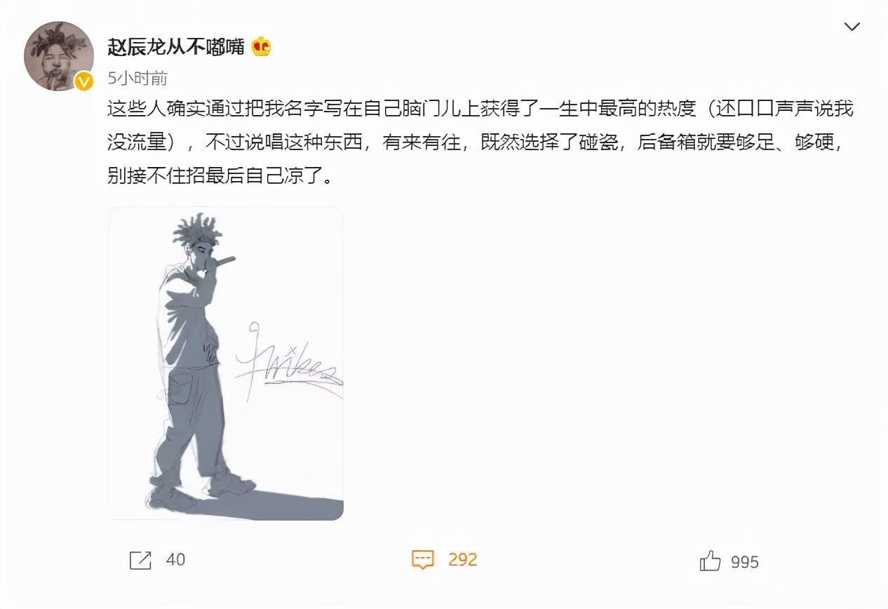随后赵辰龙发微博表示称:为何说唱非要按照地域划分一下?