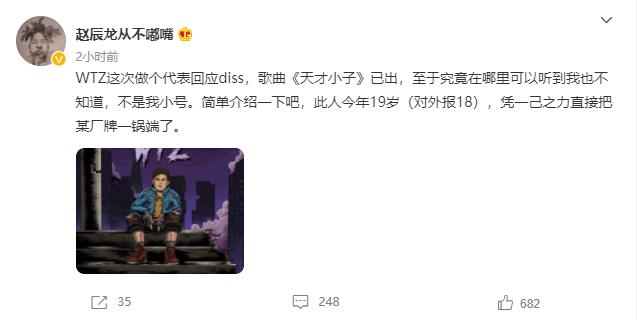 赵辰龙的最新回应则是,将由WTZ这次做个代表回应diss。