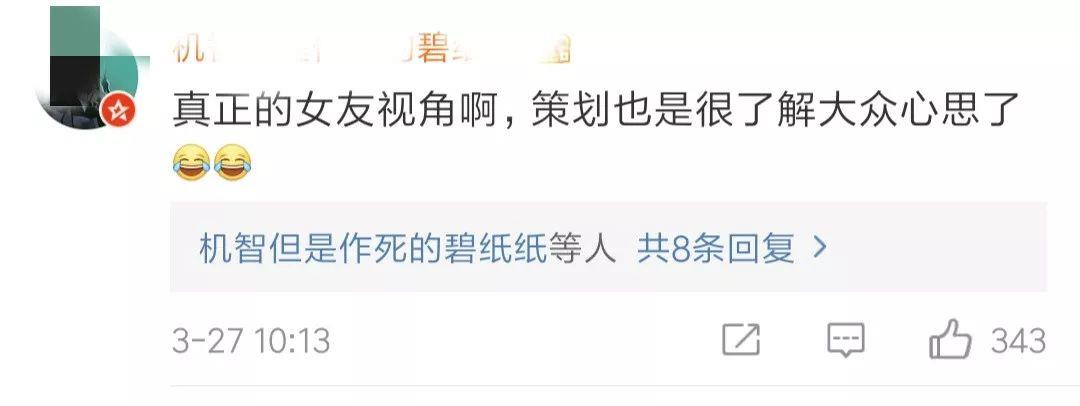 广告在抖森的微博账号发布后,这一女友视角的拍摄手法,赢得了大量粉丝的点赞。