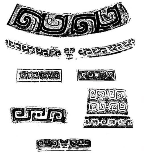 依次是云雷纹样式 涡纹样式 四瓣目纹样式