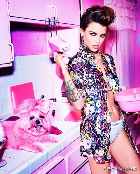就连家里养的狗狗,粉红铃铛,都被凯蒂染成了粉红的外观,当然,这种染色料是凯蒂在得到兽医的许可后用甜菜汁制作而成的,对小铃铛没有刺激性。