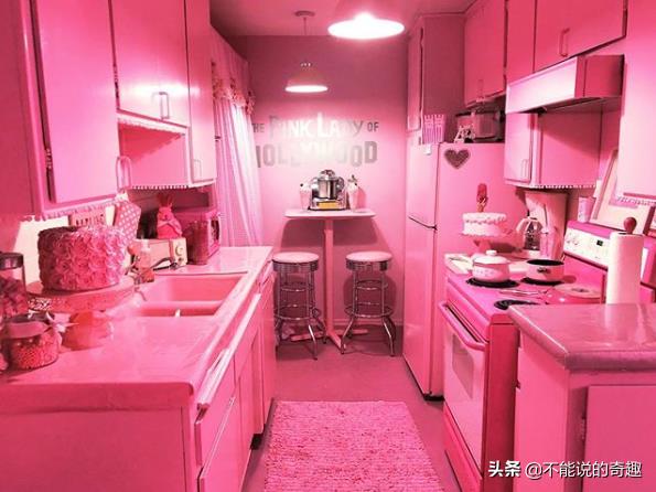 在2007年,凯蒂将整个厨房进行了翻新,当然,色调自然也是粉红色。不过这一个工程可不简单,因为厨房空间可以粉刷成粉红色,但很多工具很难有这个选择,因此几乎绝大部分的厨具凯蒂都需要定制。