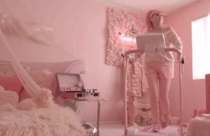 粉红色的跑步机,粉红色的吉他,坐落在房间显眼位置的粉红色“女王”椅子。围绕在凯蒂身边的,都是粉红色或者是接近这个颜色的东西。