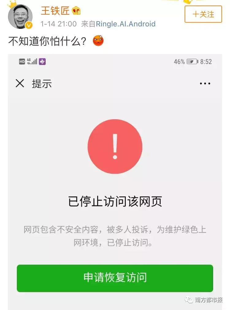 在王欣连发微博嘲讽微信“怕什么”的时候,