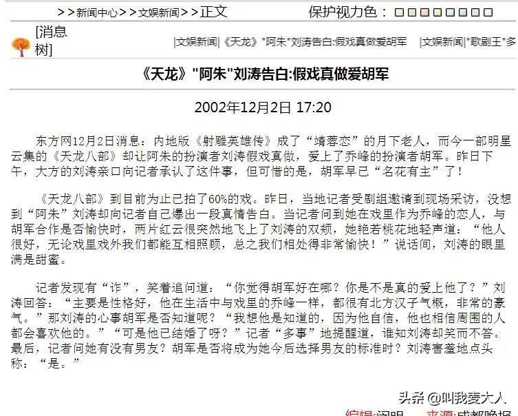 他将当年《天龙八部》期间,某女演员和胡军的往事爆了出来。