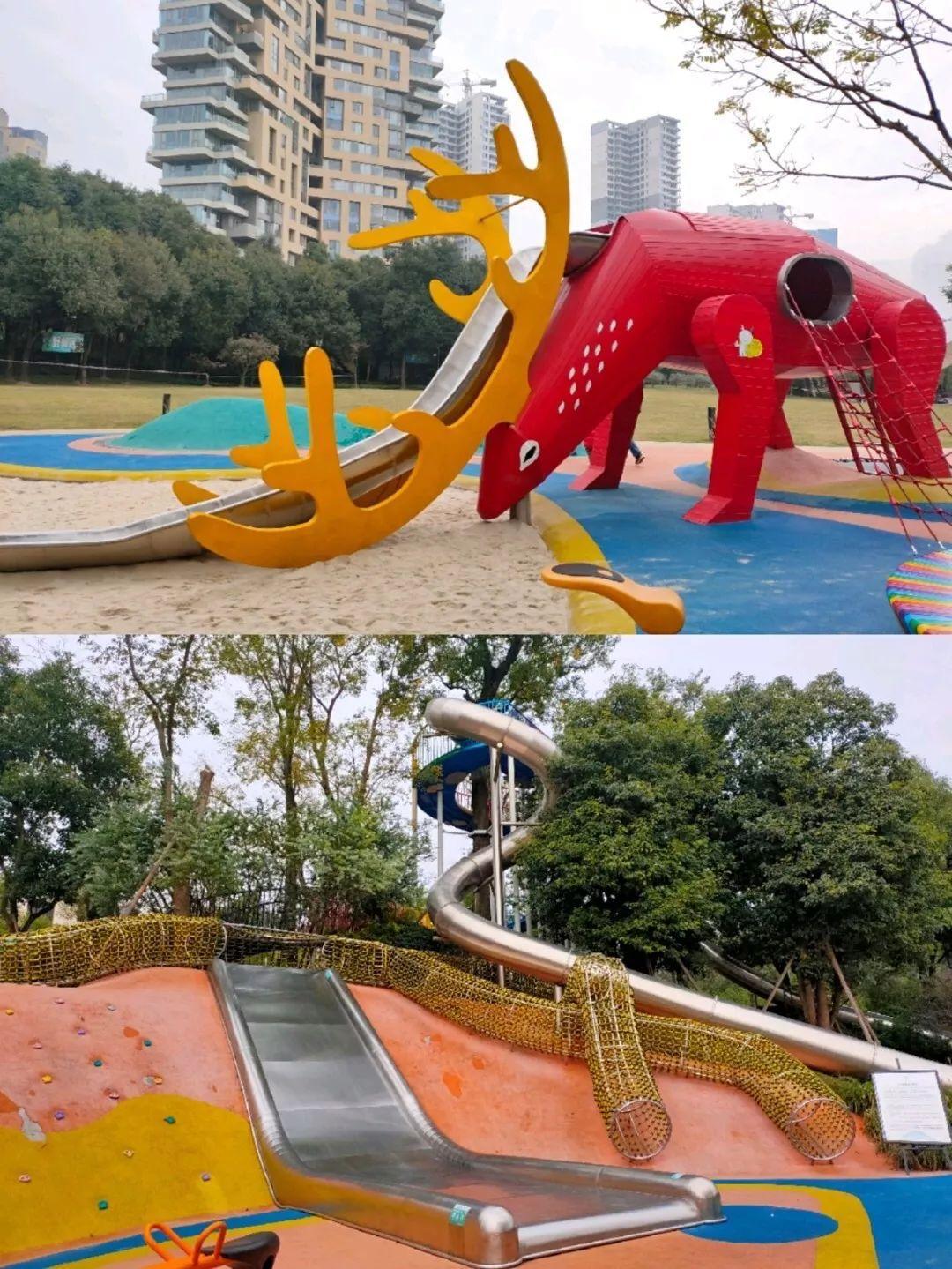红石公园和云朵乐园基本上都是小朋友玩的游乐区,有滑滑梯,攀岩,攀爬网,蹦床,秋千,滑索,跷跷板,沙坑,光这些项目随便玩一两个小时。红石有很多绿植花卉可以观赏,而云朵还可以玩水。