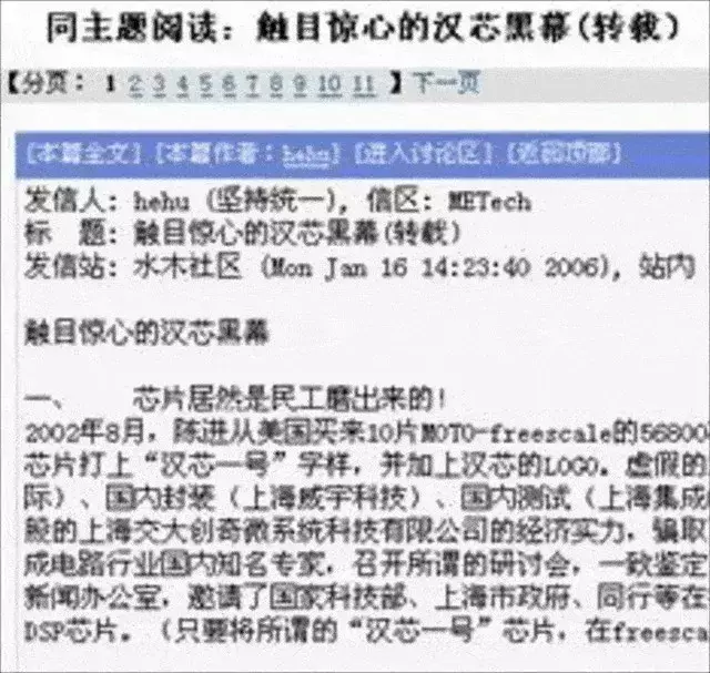 尽管在“汉芯”发布的三年后仍旧没有实现量产,人们依然对它充满期望。直至2006年,一则发布在清华校内BBS上的《触目惊心的汉芯黑幕》彻底打醒所有人……