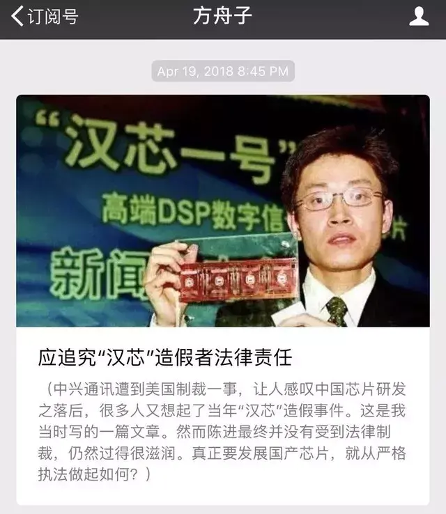 只是没有想到,给“汉芯1号”带来致命一击的,竟然是方舟子。