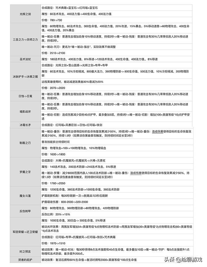 自游戏公测之日起,王者峡谷内诸多装备的更迭调整就不曾停止过。
