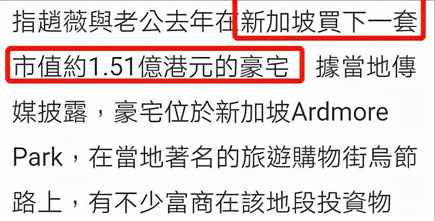 赵薇夫妇于2014年在新加坡购置了一套位于新加坡的海景公寓。