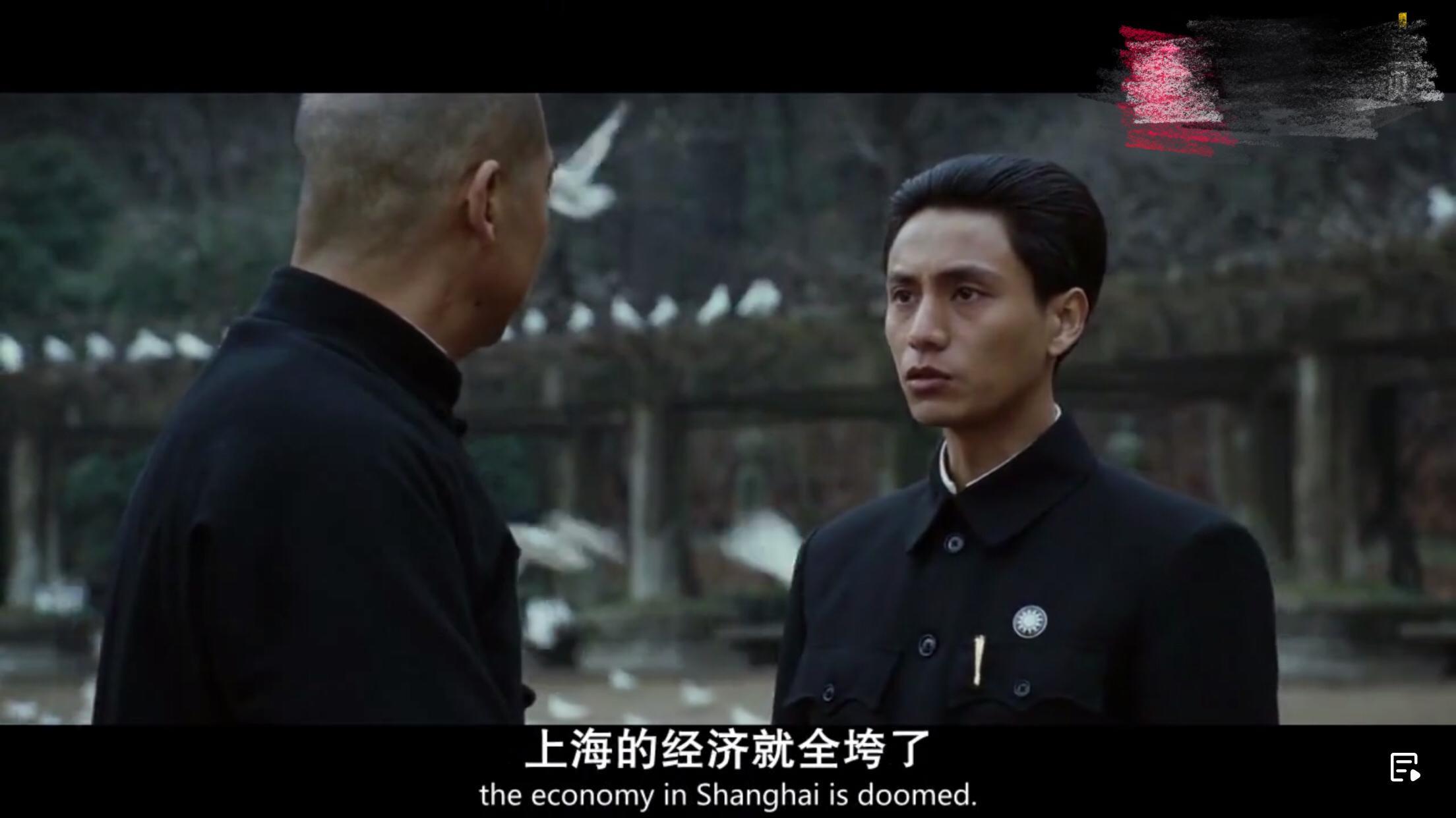场景切换,在老蒋的五大主力军被共产党全军覆灭之前,蒋经国和父亲蒋介石有了这番对话。简单几句话却道出了历史的沉重,时局的复杂,个人的渺小,以及无奈。
