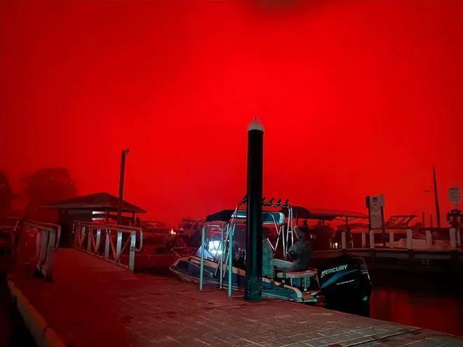 类似的情况例如澳大利亚前两年的山火,远在几十公里之外的城镇天空都红了,也出现类似的红色天空。