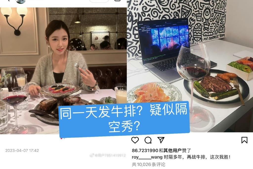在社交平台上,两人也有许多疑似秀恩爱的互动。他们曾在同一天晒出牛排照片,这种看似无心的行为却被网友解读为隔空秀恩爱。