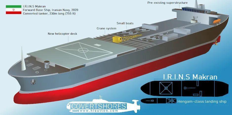但是2021年1月,以油轮改装的莫克兰号正式服役,该舰的满载排水量据说超过了12万吨(也有估计为8万吨或10万吨的),很显然这艘舰已成为伊朗海军的最大军舰了。