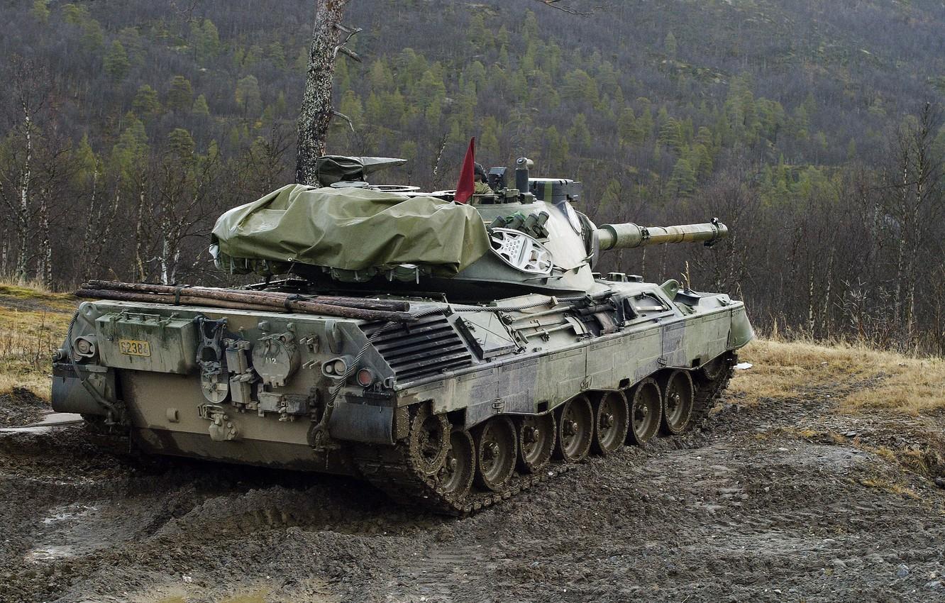 一辆西德豹 1A3 坦克埋伏在路肩上