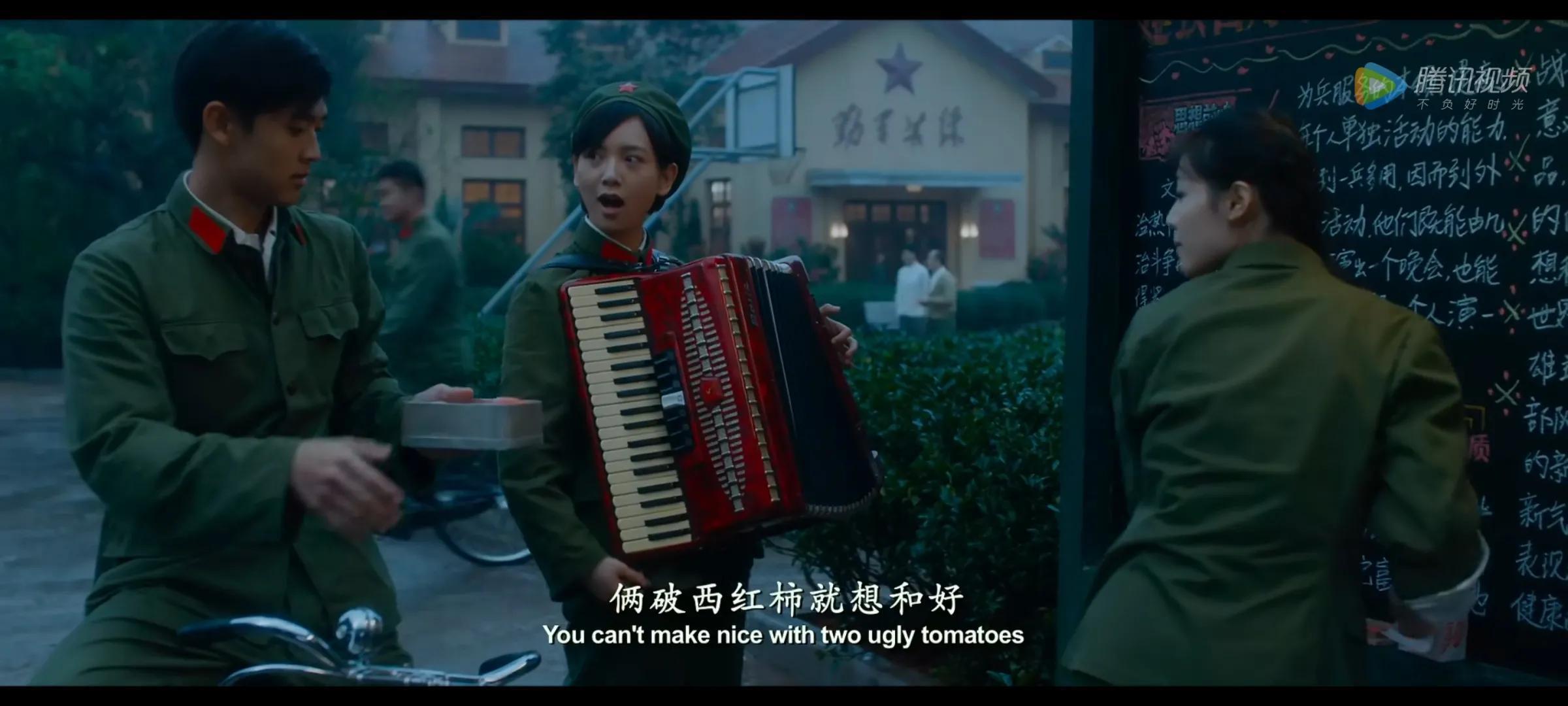 再到后来文工团实弹打靶,陈灿教萧穗子打靶,郝淑雯调侃陈灿是误人子弟。