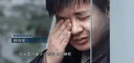 韩诗俊在面对记者时,终于有绷不住的时候,他用手抹泪:“我家里的喜字还都没有擦掉呢”。面对妻子的病情,面临年轻的妻子即将离去,韩诗俊毫无办法,他无奈地流泪:“可是我一点用都没有……”