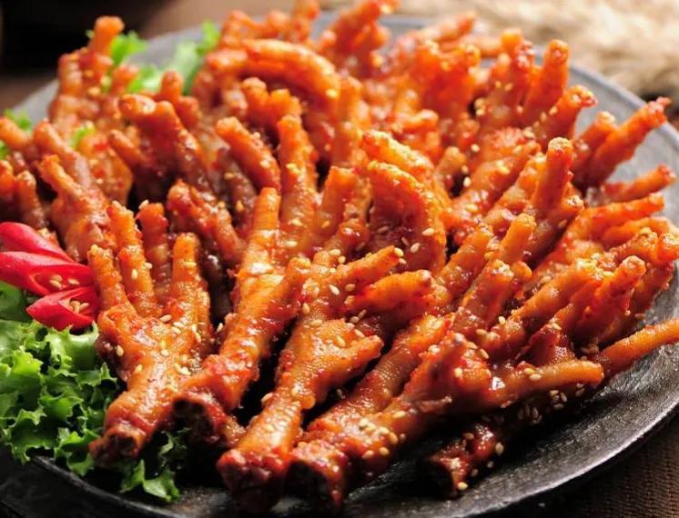 (4)锅中热油爆香蒜末,加入鸡爪翻炒片刻,再加入调好的酱汁大火翻炒均匀。