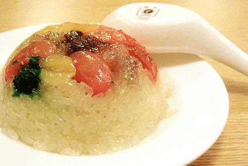 特点和口感:酒酿圆子稍大,馅心内包百果,滚米粉,成为小巧玲珑的百果圆子,配以甜酒酿,其特点百果清香,花香、酒香味更浓。
