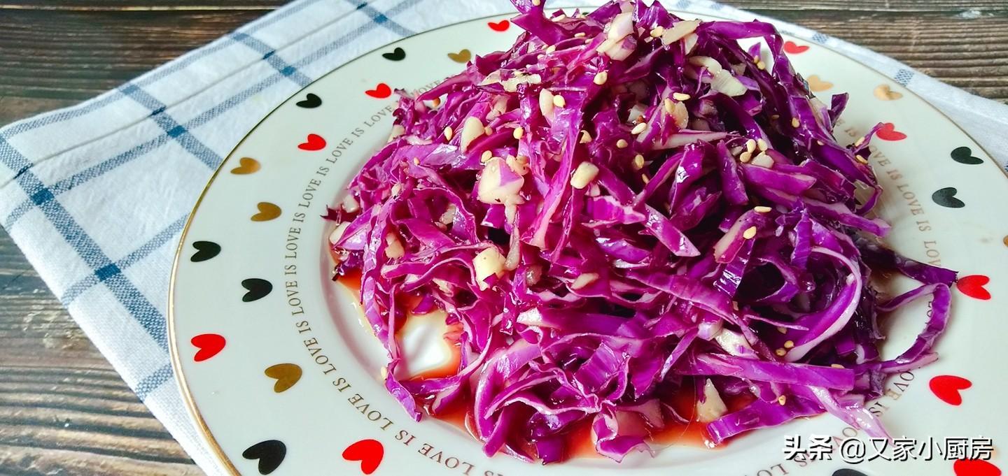 食材:紫甘蓝、蒜、生抽、白醋、盐、白砂糖。