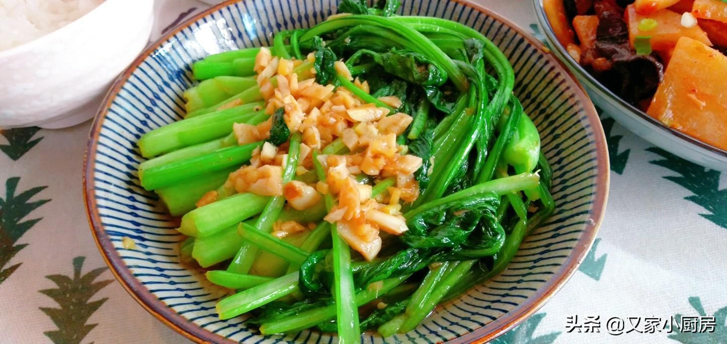 所需食材:菜心、蒜、蚝油、盐、植物油。