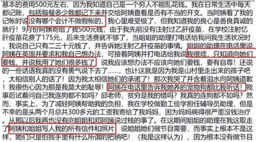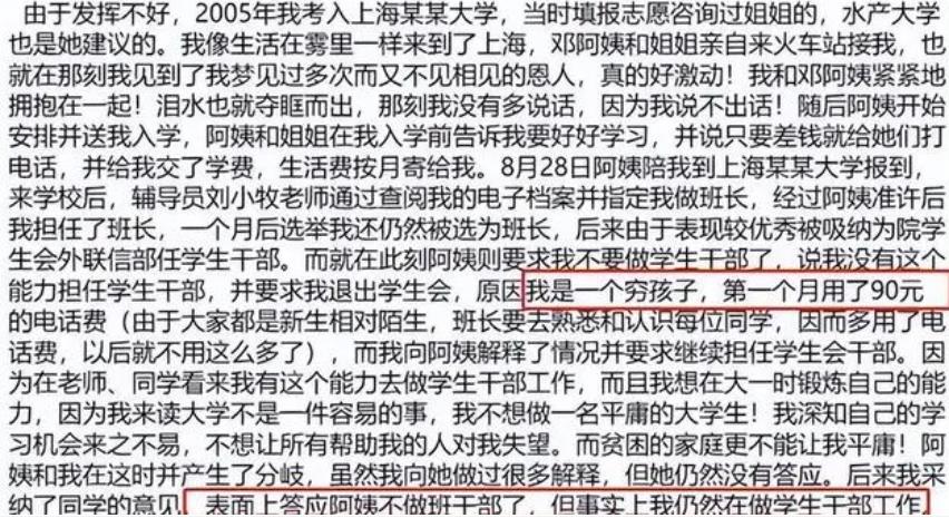 孙俪的母亲邓女士专程去学校询问,才知道实情。她沟通过后,认为向海清已经挥霍过度,决定停止每月资助。