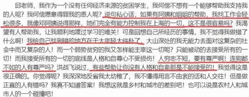 更令人诧异的是,他在申请了6000元助学贷款后,一个月内就再次向孙俪要钱。甚至想让孙俪帮她找个轻松的“好工作”,如果孙俪一表现出不愿意的态度,他就觉得是“社会中复杂的人”在欺骗“年轻质朴的自己”。向海清用“弱势”和“贫穷”作为面具来掩盖住自己“虚伪贪婪”的嘴脸。
