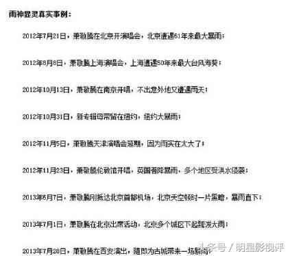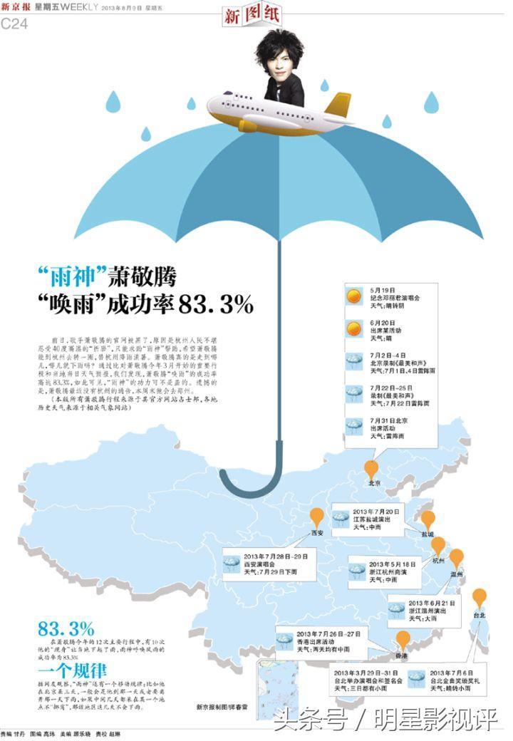 一说到下雨,现在大家首先想到的不是天气预报而是“雨神”——萧敬腾!没错,不知道萧敬腾是什么体质,只要他去哪里开演唱会,那个城市当天下雨的机率就非常高,甚至有很多网友感慨:“也许萧敬腾是龙王爷的儿子吧~”