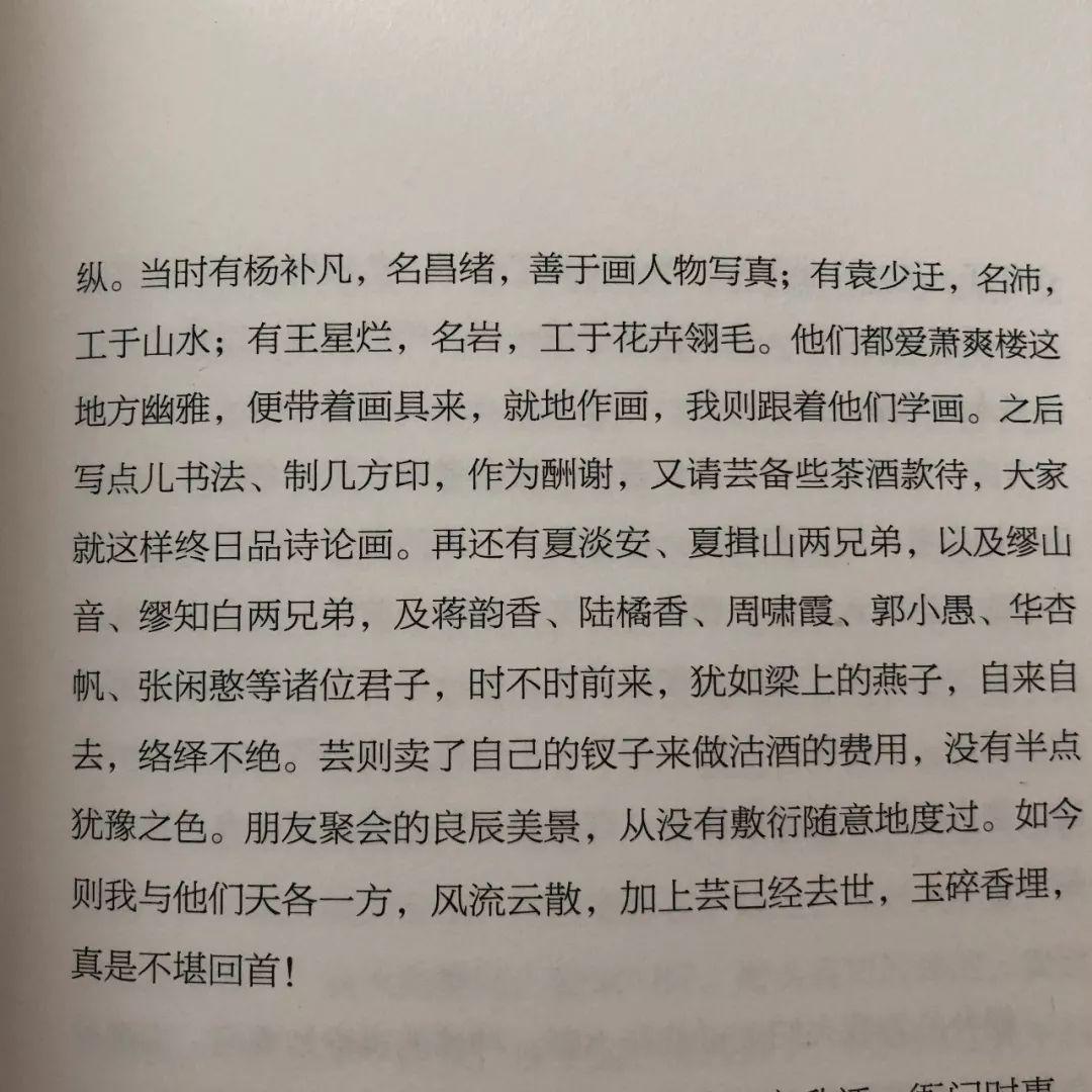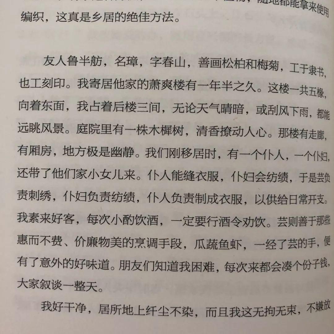 书中有一段描写沈复他们家在快要入不敷出的时候,靠妻子和仆人的针线手艺补贴家用,而自己最爱做的,就是约三五好友吟诗作赋花前月下,在我看来就是游手好闲无所事事,你说说看,这样的生活是不是很令人向往?